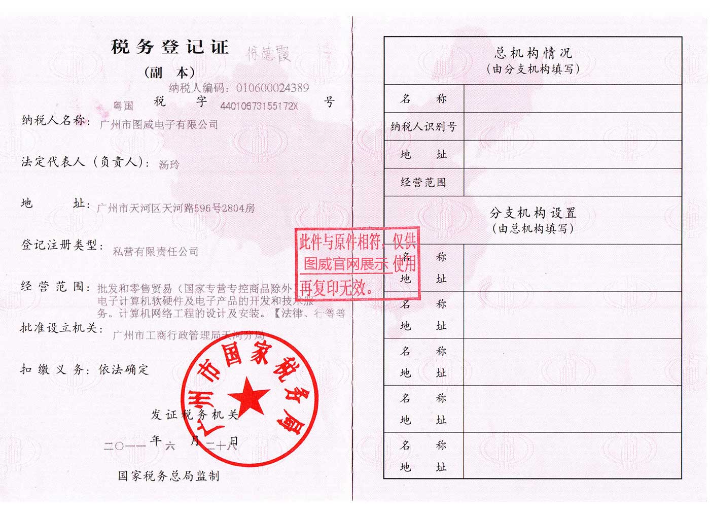 圖威國稅登記證