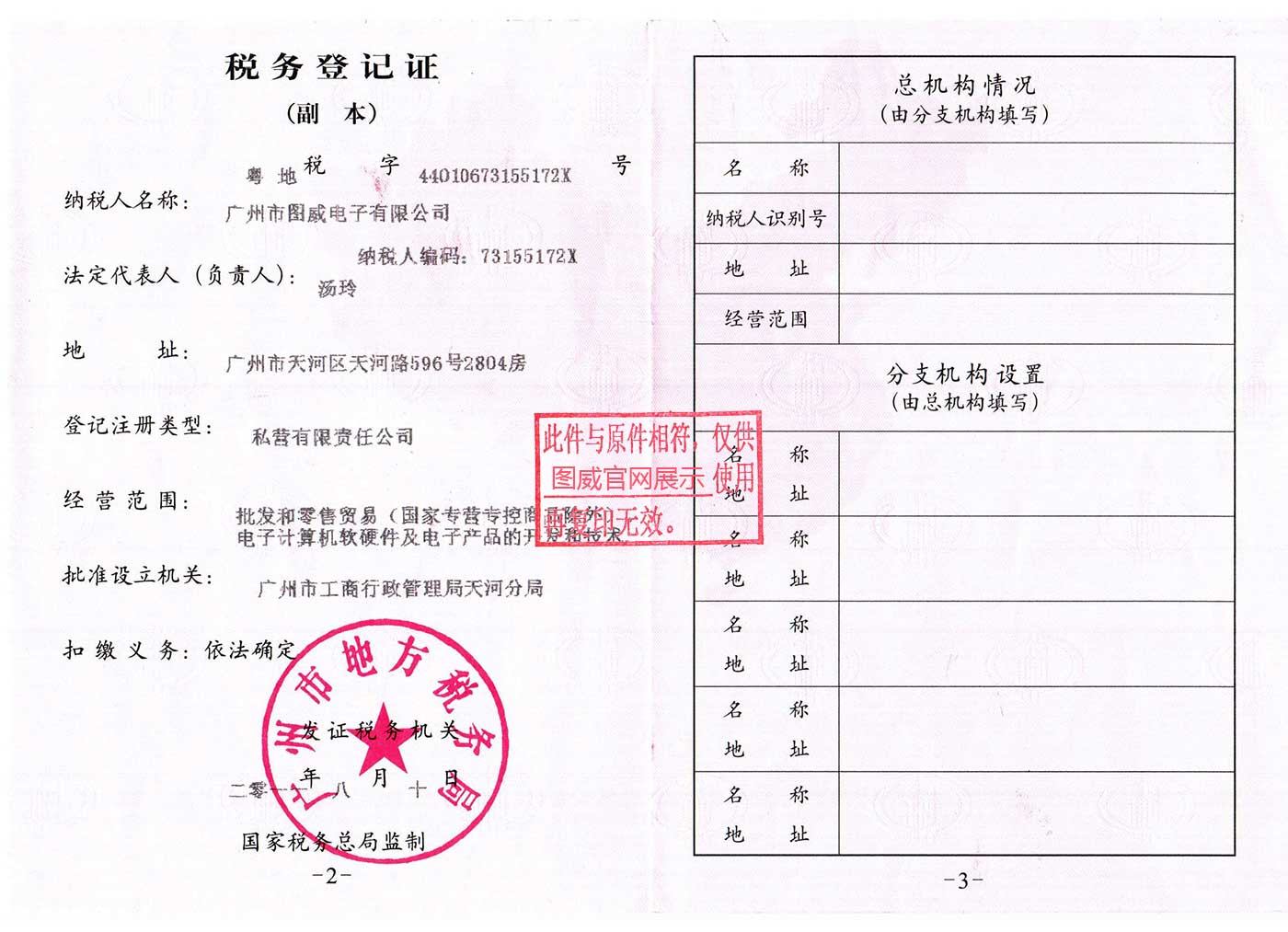 圖威地稅登記證